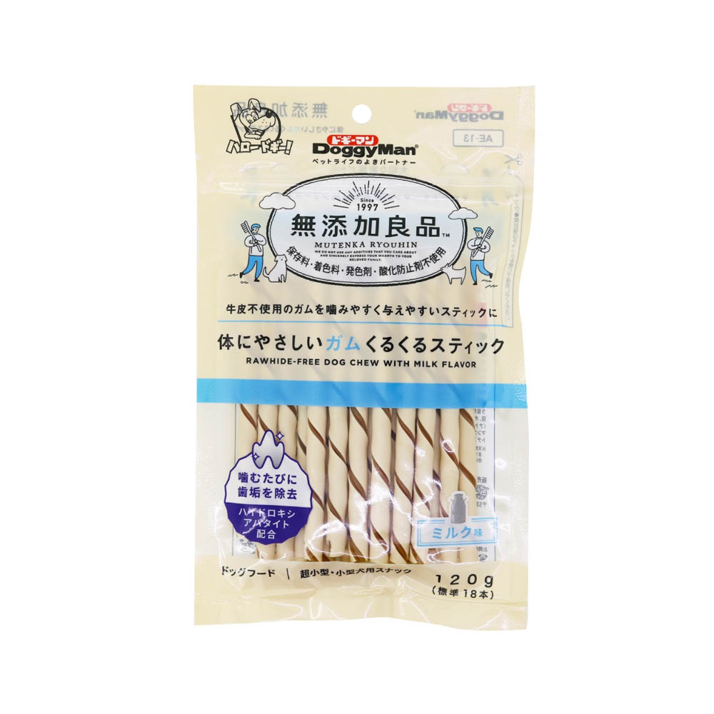 ドギーマン 無添加良品 体にやさしいガムくるくるスティック120g(標準18本)