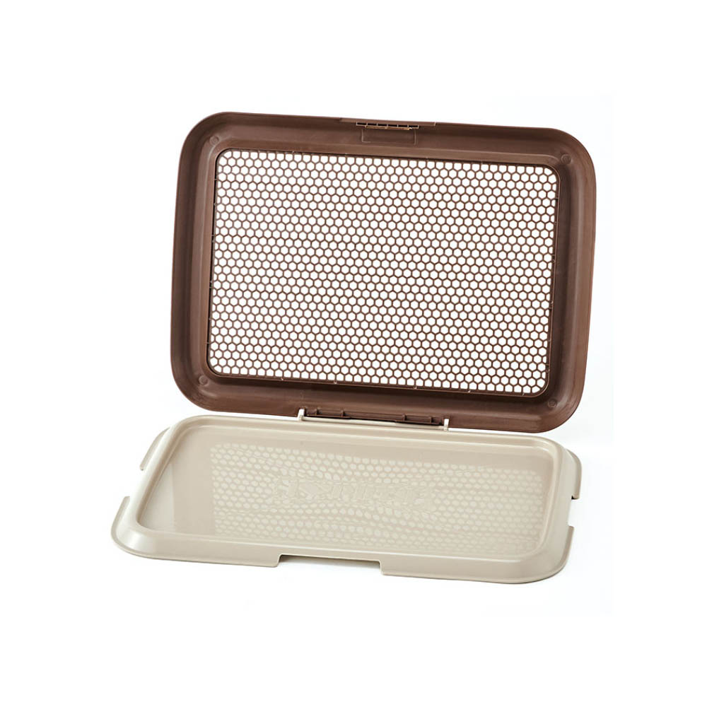 シーツへのいたずらを防止&幼犬から老犬まで使える低床式の犬用トイレ。メッシュは汚れが溜まりにくいハニカム形状。シーツ交換時も片側のロックを解除するだけで簡単です。抗菌成分を配合&出っ張りの無い洗いやすい形状で、いつでも清潔にご使用いただけます。滑り止めが付いているので、フローリング等の上に置いても滑らず安心です。ワイドサイズのシーツに対応使用中に破損・変形・劣化が見られた場合は、直ちに使用を中止してください。本製品は犬用の室内専用トイレです。他の用途には使用しないでください。安全にお使いいただくために、ご使用前に本体付属の取扱説明書を必ずお読みください。ペットが本体やメッシュを強く引っかいたり噛む場合は、ケガや誤飲を防ぐため使用をおやめください。