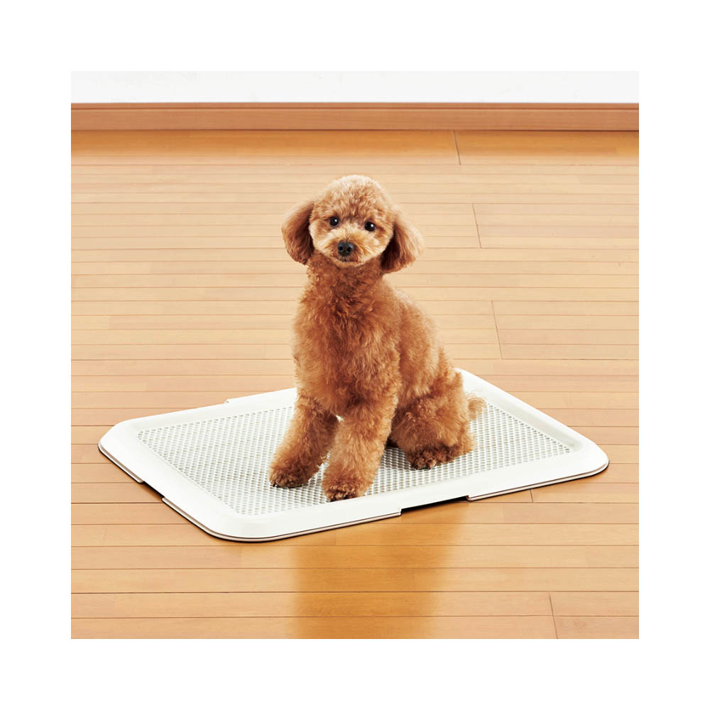 シーツへのいたずらを防止&幼犬から老犬まで使える低床式の犬用トイレ。メッシュは汚れが溜まりにくいハニカム形状。シーツ交換時も片側のロックを解除するだけで簡単です。抗菌成分を配合&出っ張りの無い洗いやすい形状で、いつでも清潔にご使用いただけます。滑り止めが付いているので、フローリング等の上に置いても滑らず安心です。ワイドサイズのシーツに対応使用中に破損・変形・劣化が見られた場合は、直ちに使用を中止してください。本製品は犬用の室内専用トイレです。他の用途には使用しないでください。安全にお使いいただくために、ご使用前に本体付属の取扱説明書を必ずお読みください。ペットが本体やメッシュを強く引っかいたり噛む場合は、ケガや誤飲を防ぐため使用をおやめください。