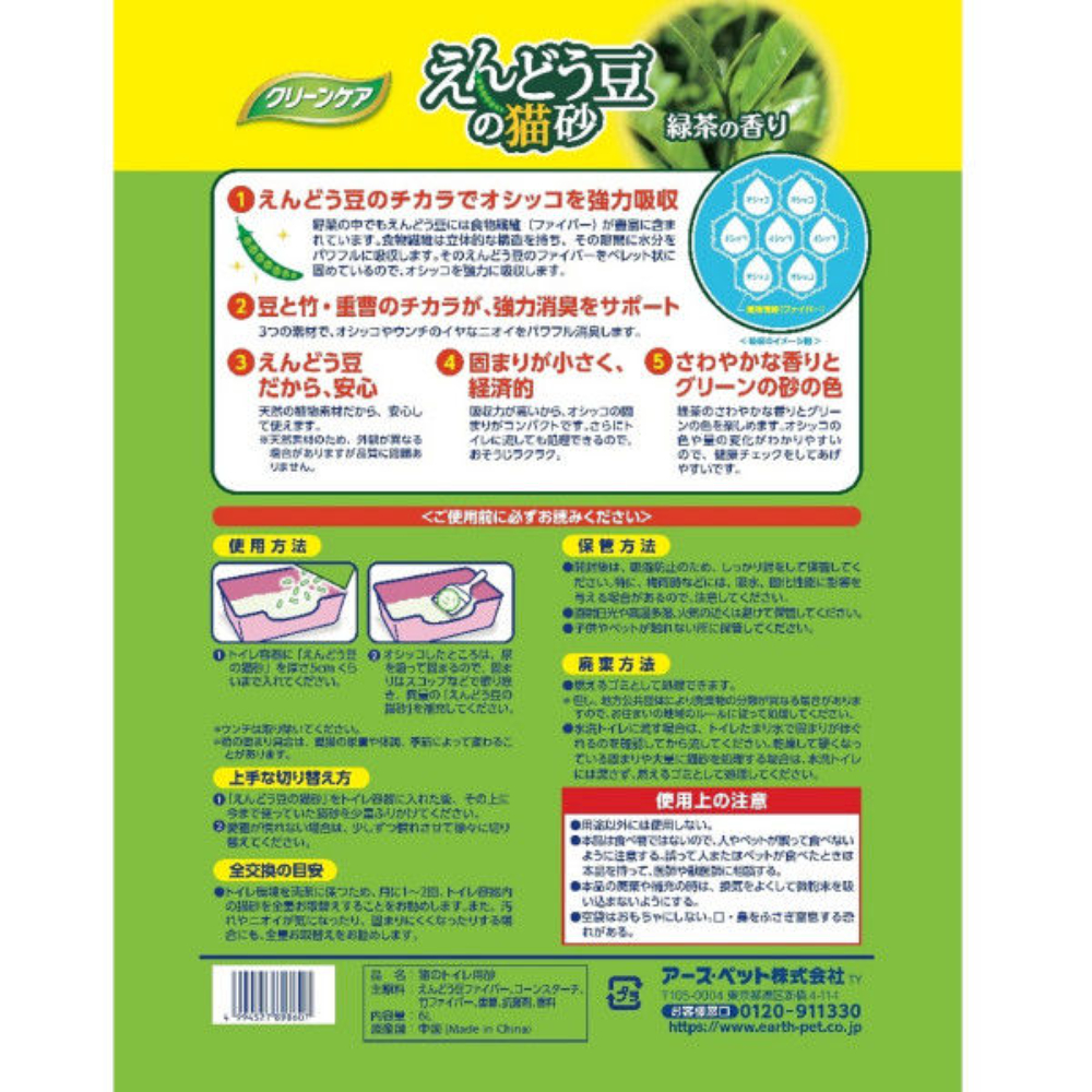 クリーンケア えんどう豆の猫砂 緑茶の香り6L