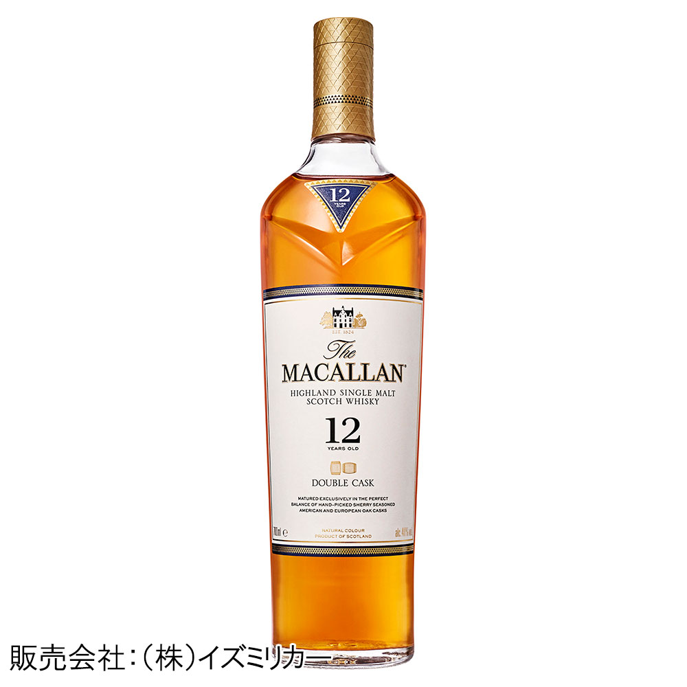 ザ・マッカラン ダブルカスク12年は、伝統的なザ・マッカランのスタイルと、アメリカンオークの甘さを融合させたダブルカスクシリーズのひとつ。ファッジ、柑橘類、柔らかなスパイスの風味があり、完璧に調和の取れたまろやかなシングルモルトです。