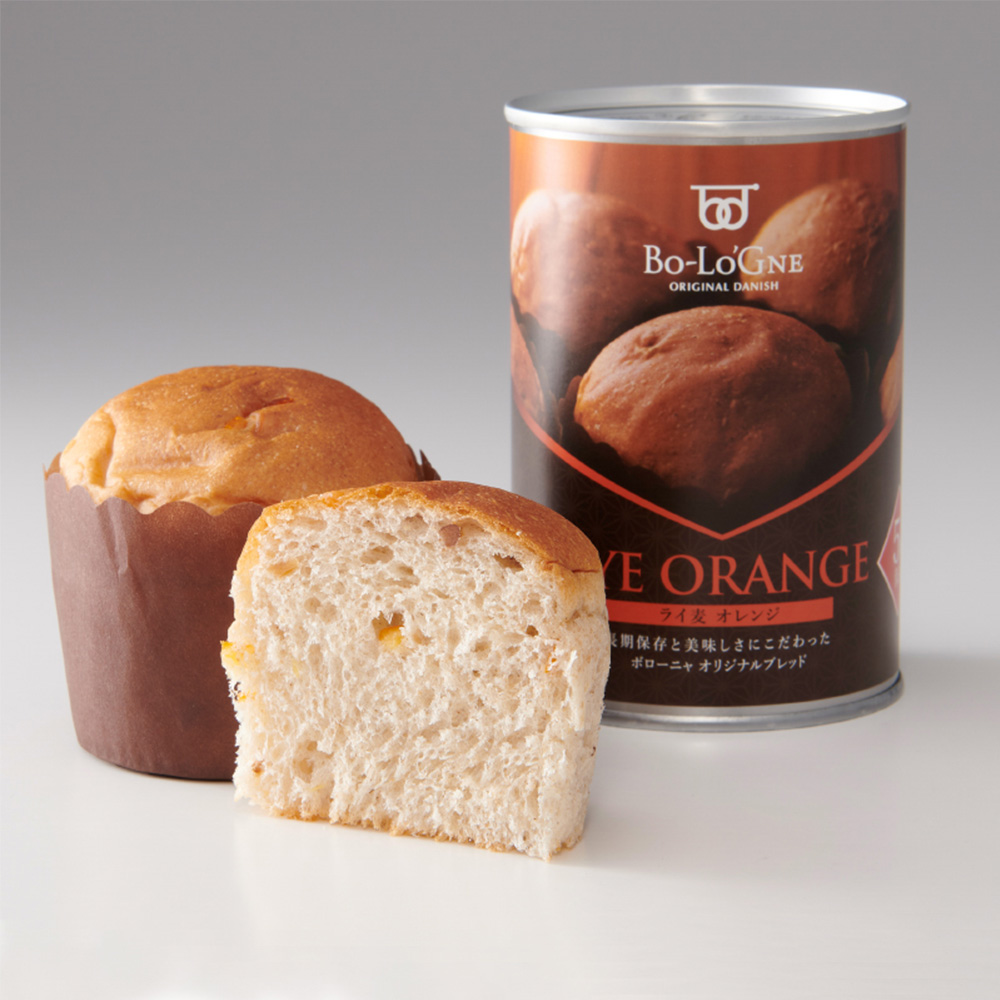 官公庁も運用する本格派防災備蓄用の缶詰パンです。ブリオッシュタイプで、ライ麦オレンジ味です。