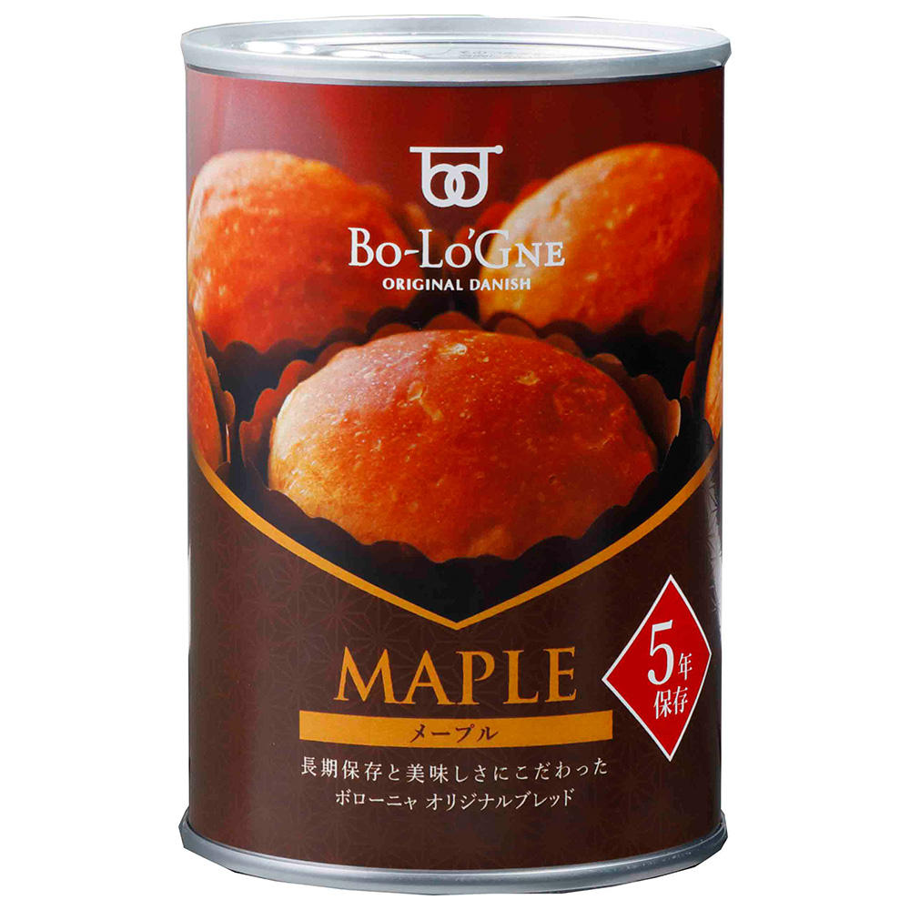 官公庁も運用する本格派防災備蓄用の缶詰パンです。ブリオッシュタイプで、メープル味です。