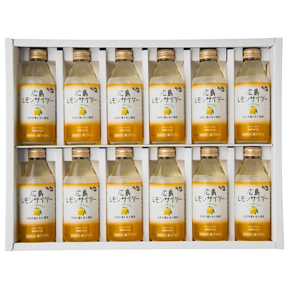生産量日本一である広島レモンの果汁を使用したレモンサイダーです。「広島レモンは果実1個ずつが広島の宝」をコンセプトとして、1瓶に果実1個分の果汁(15%)を使用し、黄金色に輝くパッケージをデザインしています。