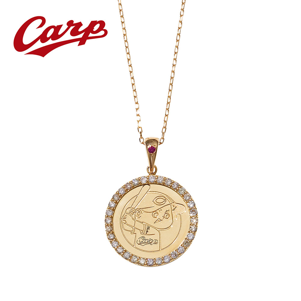 人気のコイン型ネックレスとカープ坊やを組み合わせました。