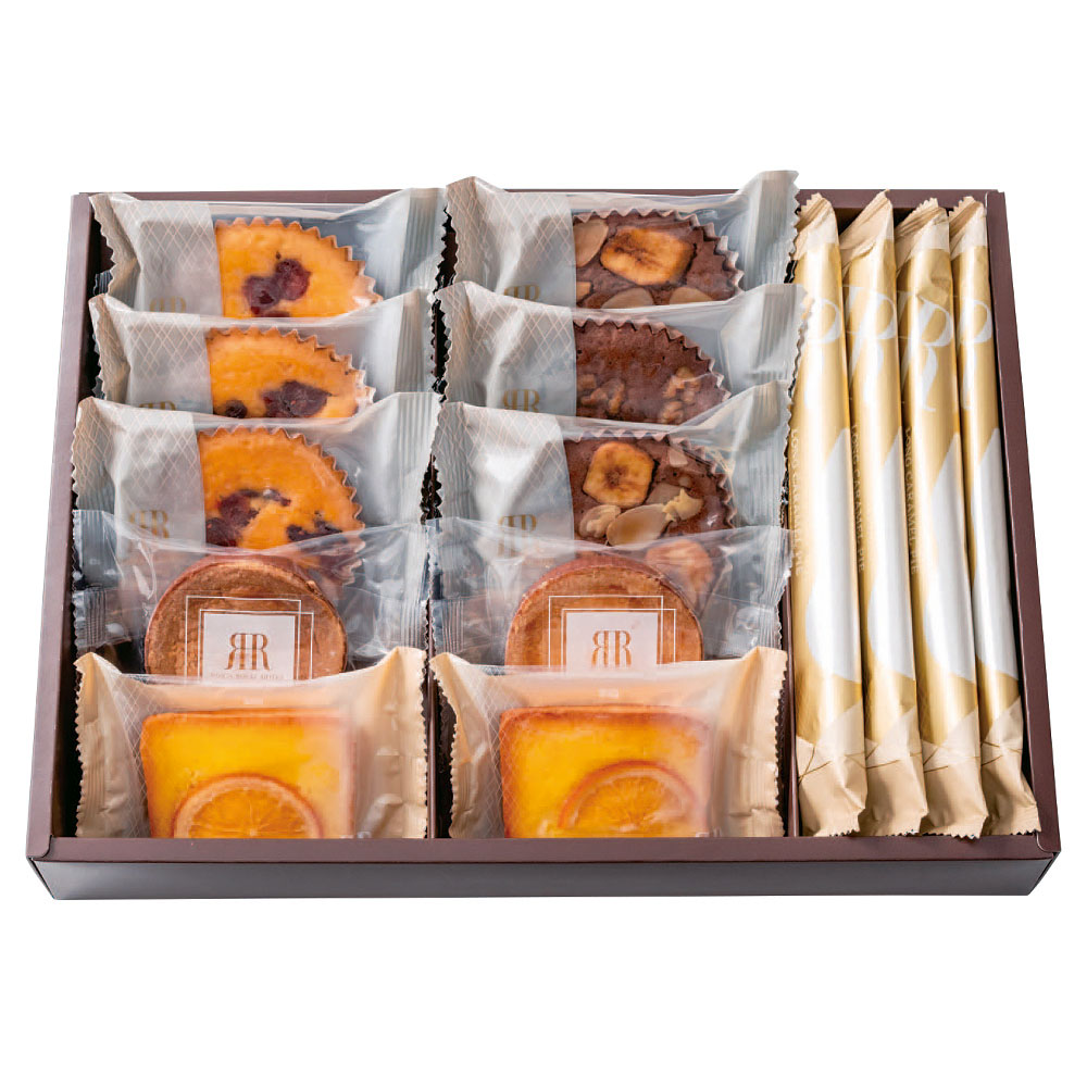 プチケーキ(ベリー×3個、ショコラ&バナナ×2個、ショコラ&ナッツ×1個)、ガレットブルトンヌ・オレンジケーキ×各2個、ロングキャラメルパイ×4本、RRB-03A