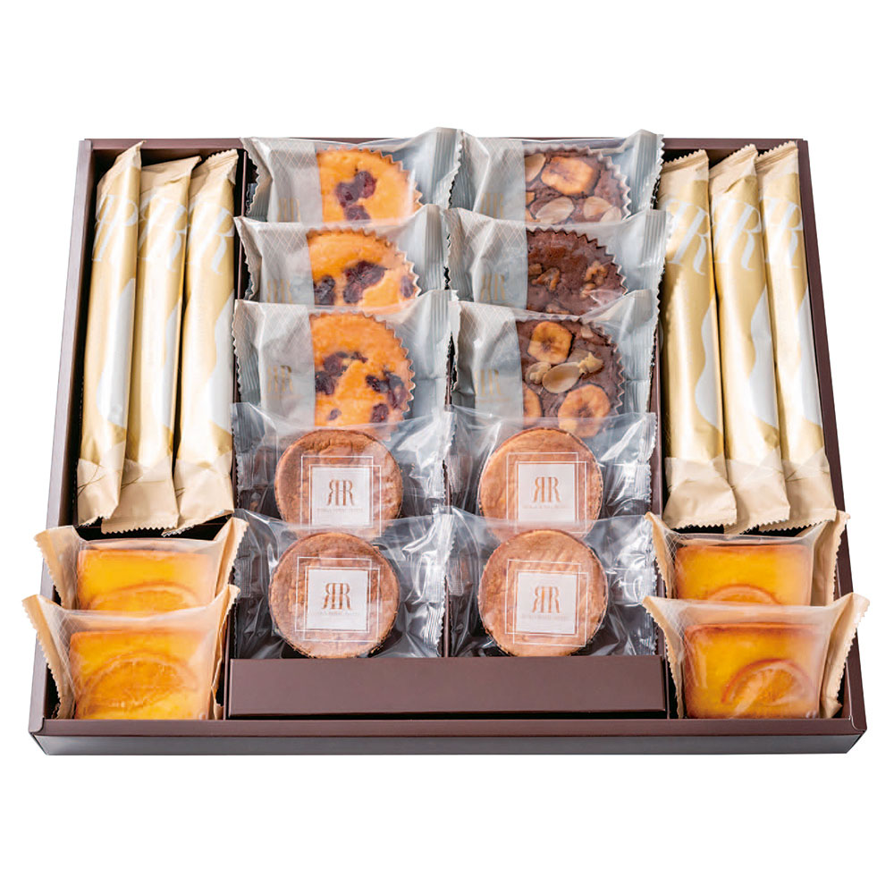 プチケーキ(ベリー×3個、ショコラ&バナナ×2個、ショコラ&ナッツ×1個)、ガレットブルトンヌ・オレンジケーキ×各4個、ロングキャラメルパイ×6本、RRB-04A