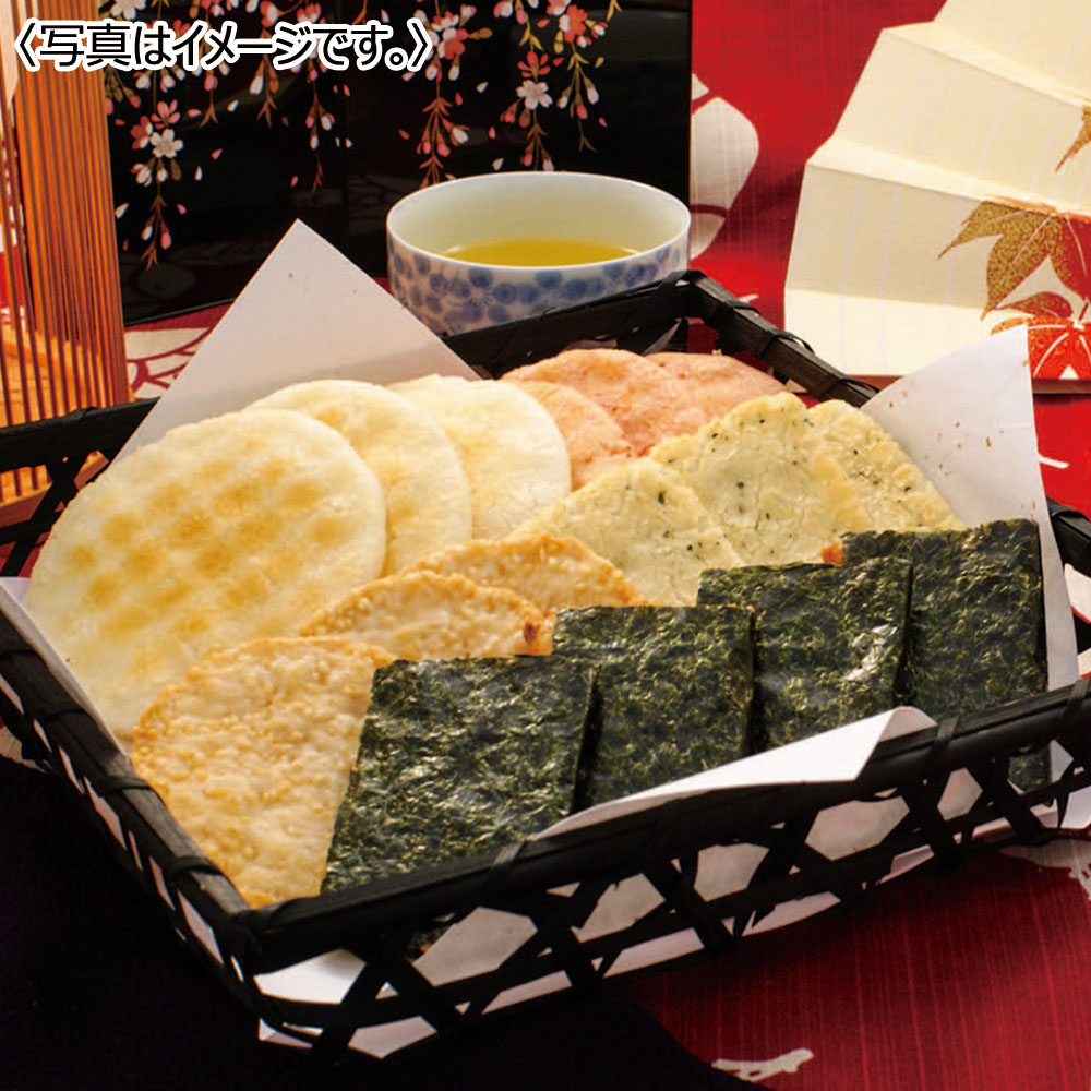 海老塩煎餅・柚子胡椒煎餅・海老カレー煎餅×各6枚、青さ海苔煎餅×4枚、サラダ煎餅×3枚、RGN-25R