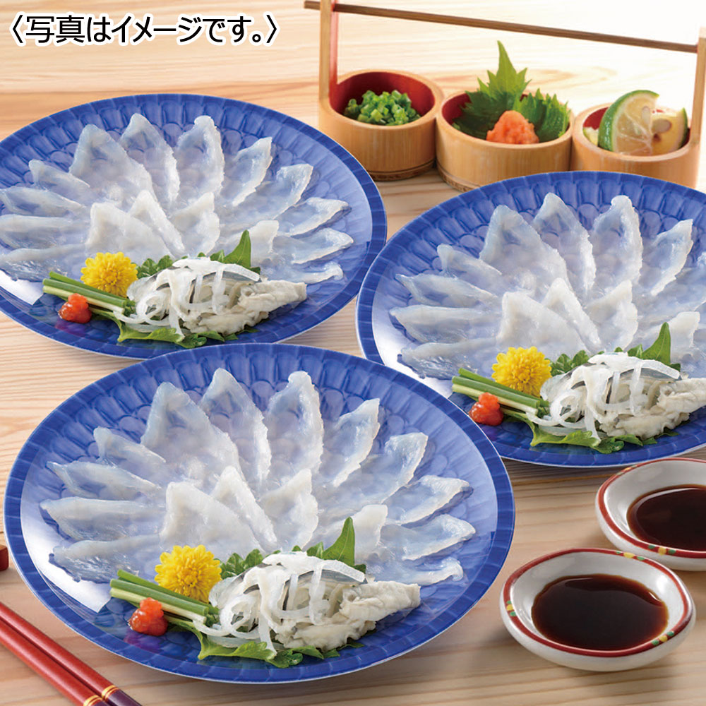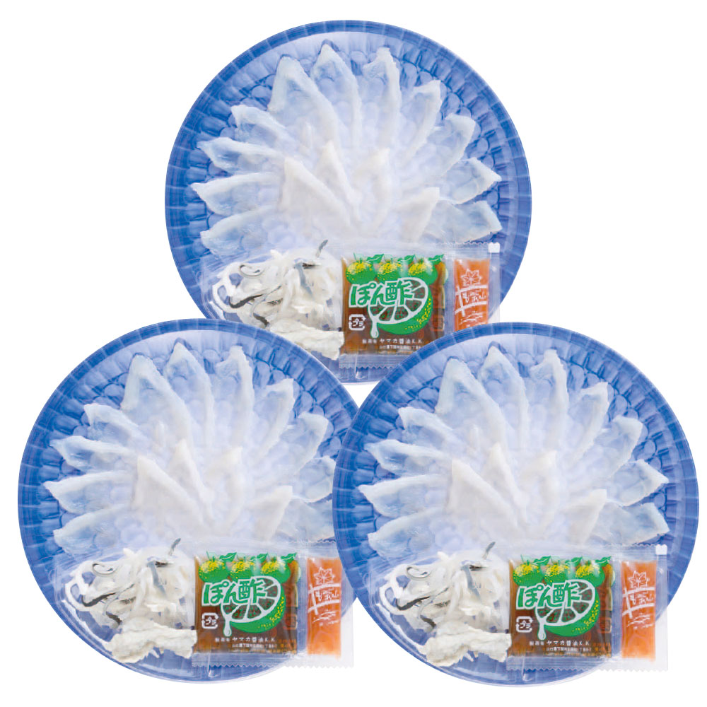 とらふく刺身20g・とらふく皮湯引き10g・ぽん酢・もみじおろし 各1袋×3皿、DC-S3