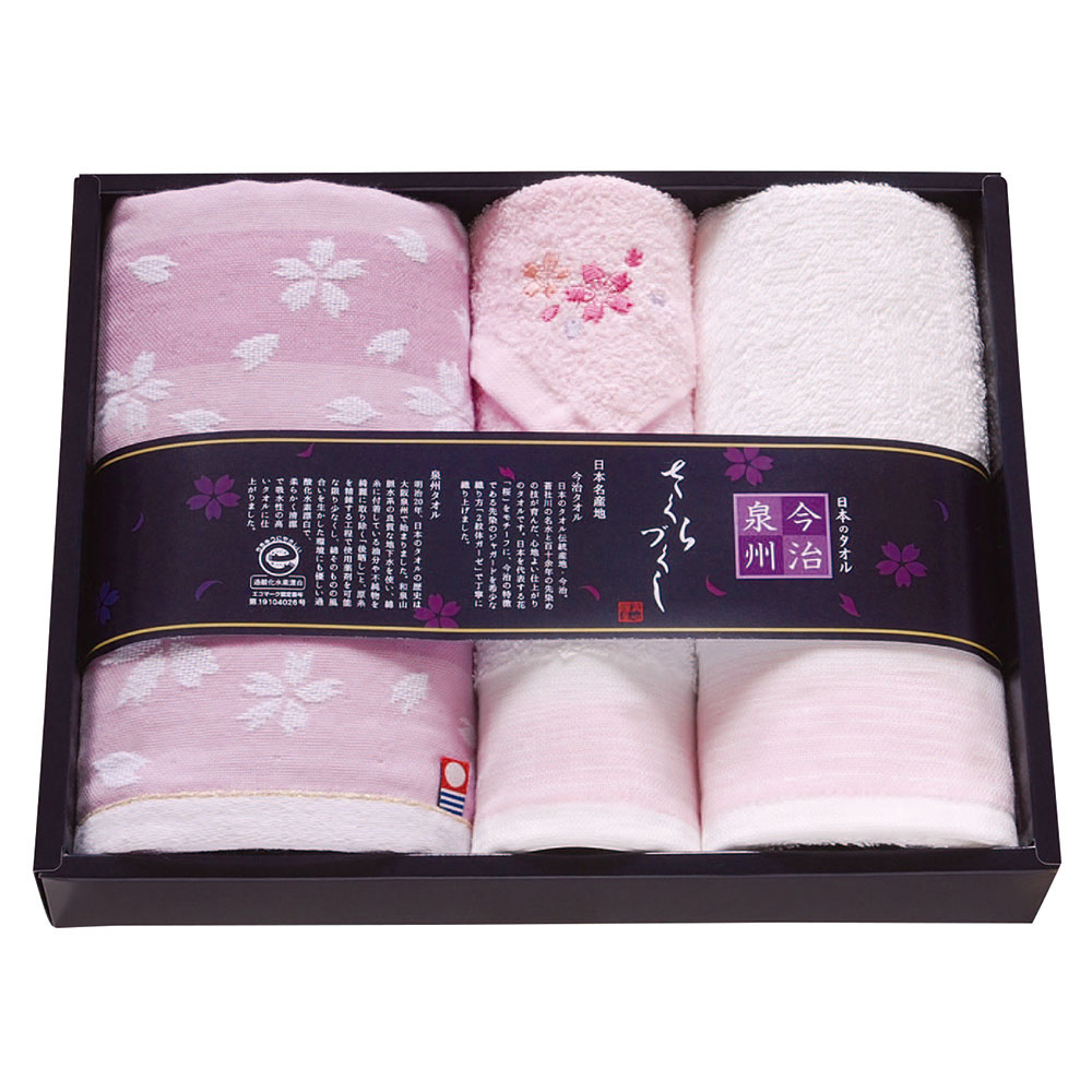 今治フェイスタオル(約33×75cm)・泉州フェイスタオル(約29×75cm)・泉州ハンドタオル(約29×29cm)・泉州タオルハンカチ(約29×29cm)×各1枚、TMS3008805
