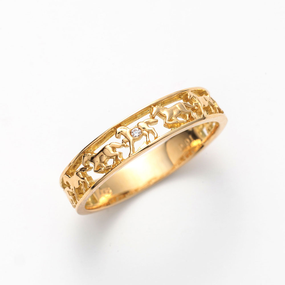 K18YG ダイヤ 馬九行久(うまくいく)リング 0.01ct