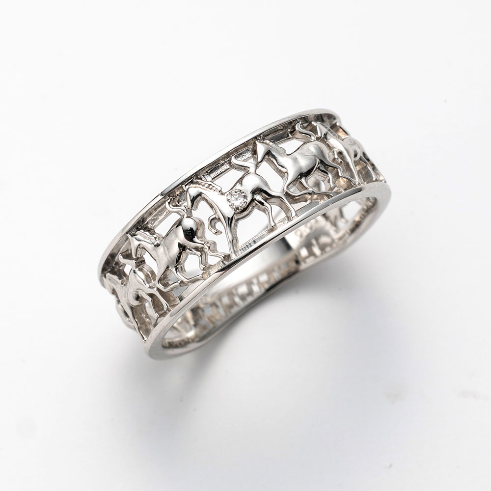 PT950 ダイヤ 馬九行久(うまくいく)リング 0.01ct