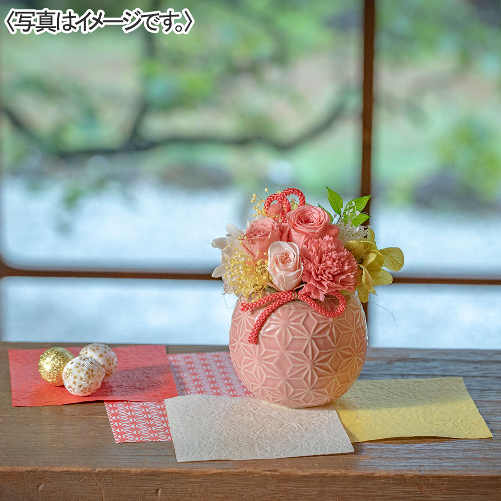 和風テイストを取り入れたころんとしたフォルムが可愛く、優しい気持ちが溢れるプリザーブドフラワーアレンジメントです。