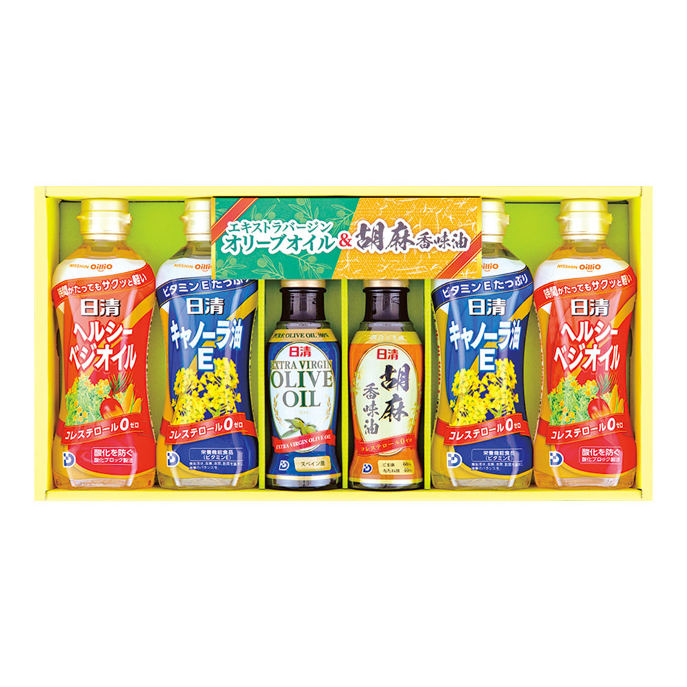 日清(ヘルシーベジオイル350g×2・キャノーラ油E350g×2・エキストラバージンオリーブオイル145g・胡麻香味油145g)