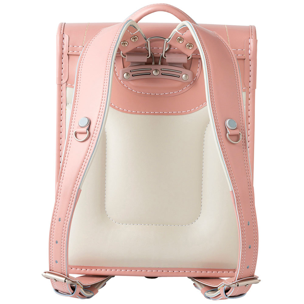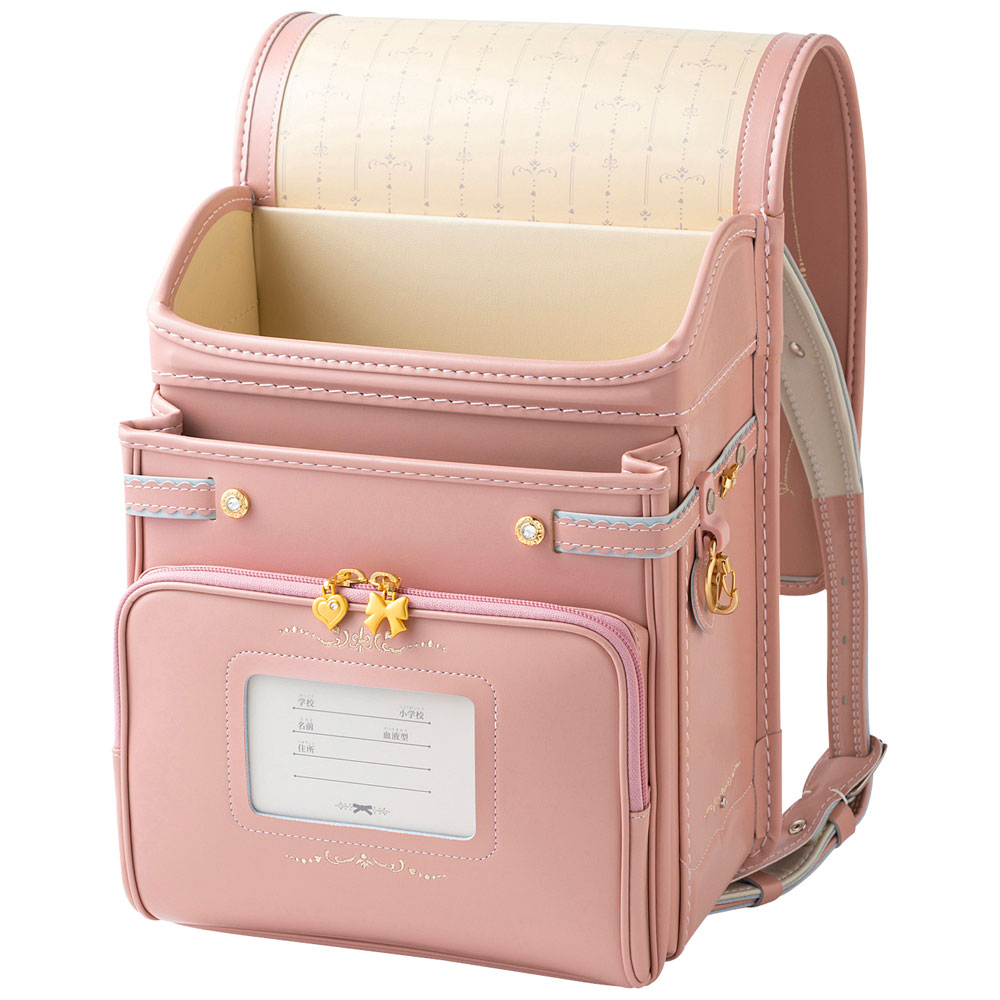 かぶせやマチベルトにリボンが付き、肩ベルトに衝撃を吸収する素材を従来の2倍使用した「楽ピタ」クッションベルトと、簡単に開け閉め出来る「くるピタ」錠前を搭載したモデルです。