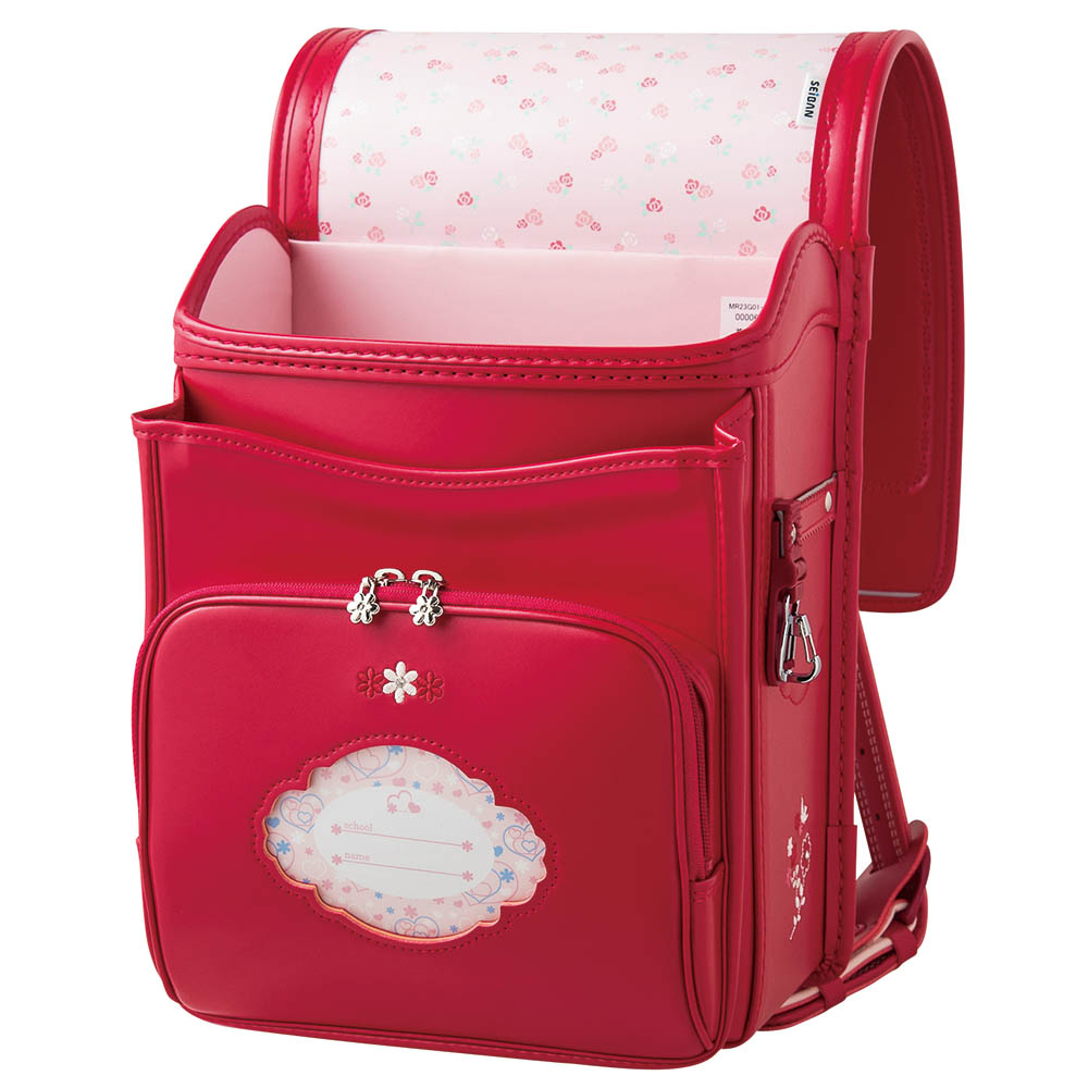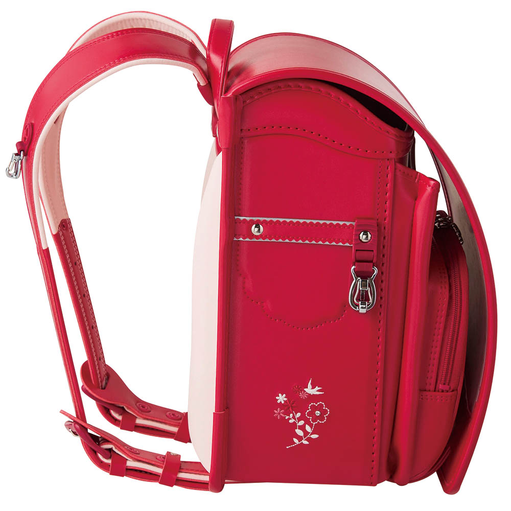 やわらかなカラーの生地にお花と小鳥をあしらったデザインがナチュラルガーリーなランドセル。
