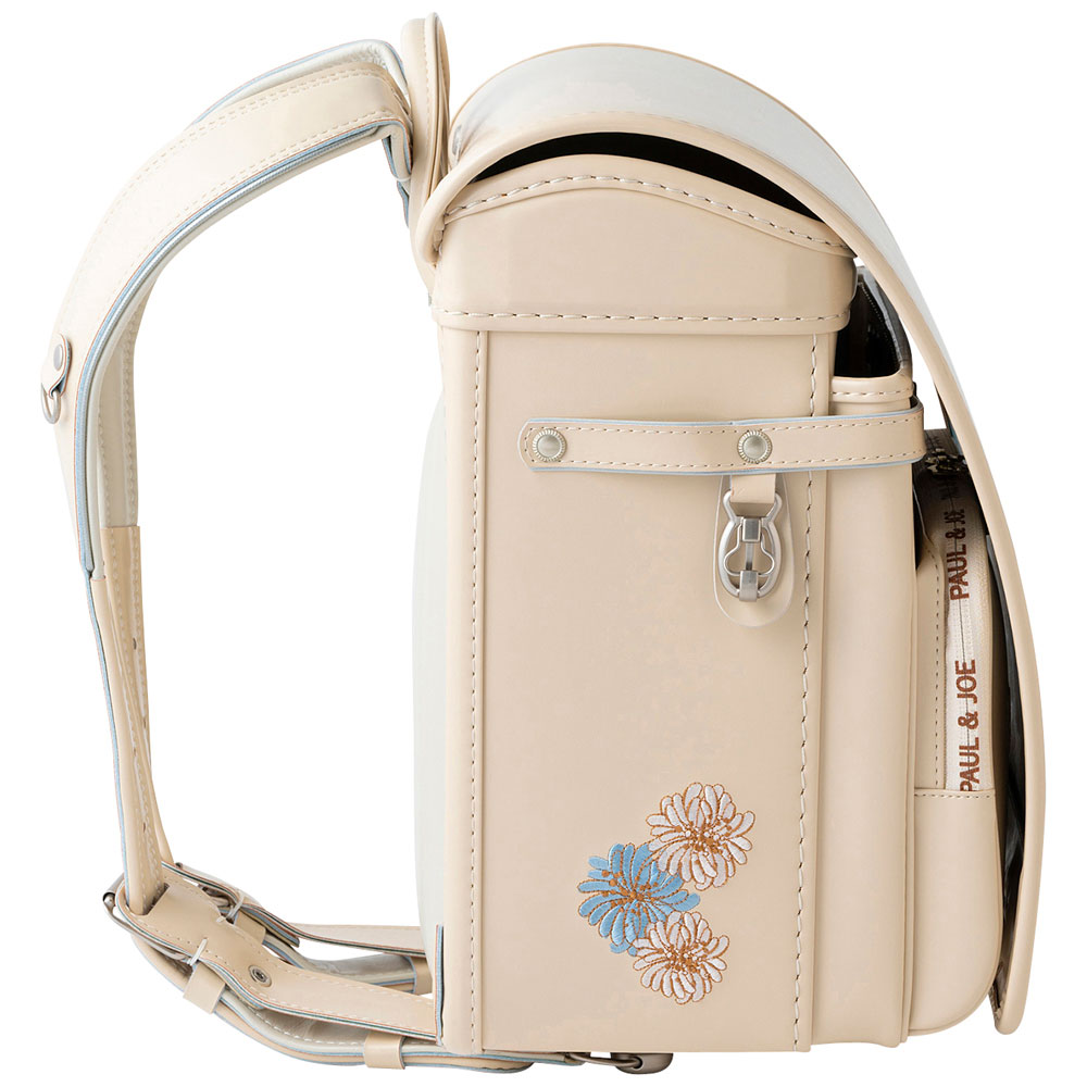 ブランドのアイコンである「クリザンテーム」の刺繍や、定番モチーフ・キャットが随所にちりばめられた、キュートなランドセル。