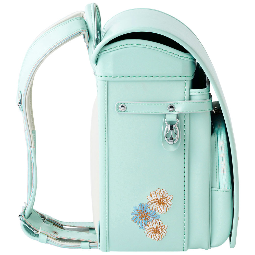 ブランドのアイコンである「クリザンテーム」の刺繍や、定番モチーフ・キャットが随所にちりばめられた、キュートなランドセル。