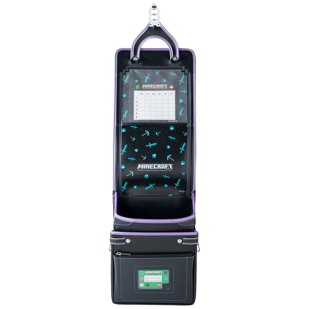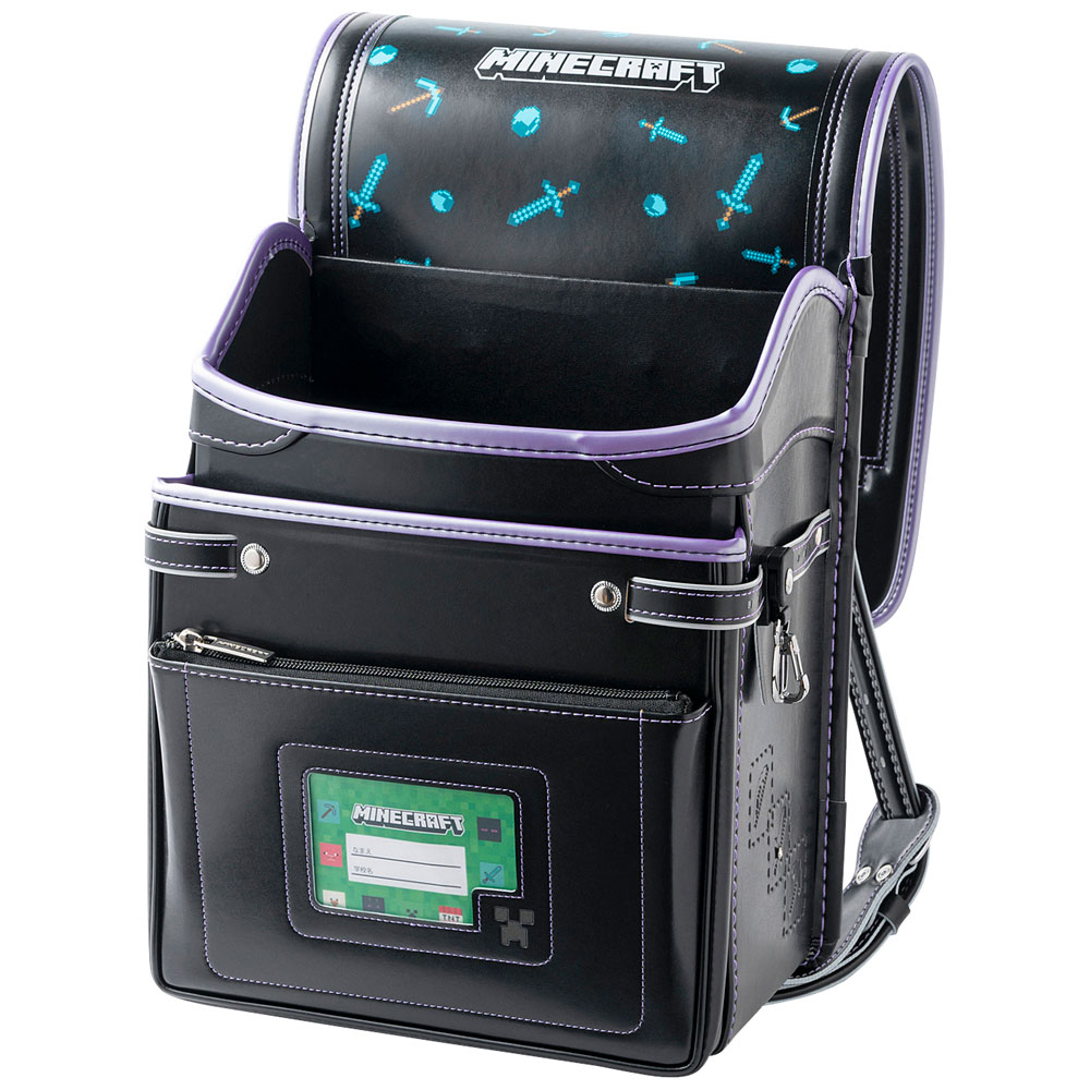 マインクラフトの人気アイテム「ダイヤモンドつるはし」と「ダイヤモモンド剣」をかぶせ裏にプリントし、ランドセルを開けた時に広がるマインクラフトワールドを表現した楽しいランドセルです。