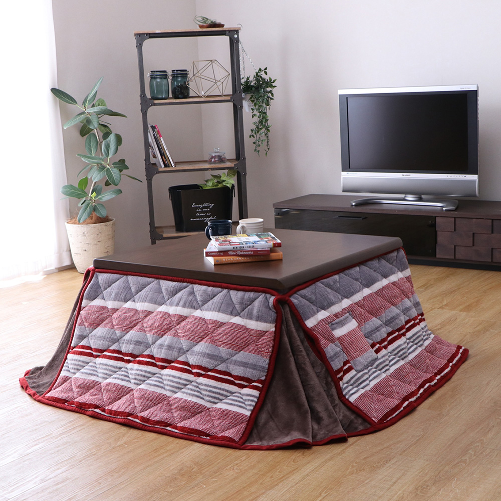 ジャガード織りの凹凸感が特徴的なこたつ布団です。省スペースタイプで角が膨らまず、お部屋を広く使えます。薄手なので折りたたんでもかさばらず、コンパクトに収納できます。部分暖房のこたつは電気代もお得です。