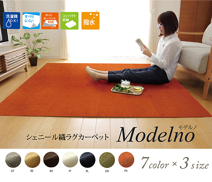 【送料込み】ラグ洗える 無地カラー 選べる7色『モデルノ』