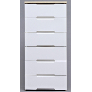 リビングの収納にピッタリの木天板付きチェストです。木天板は汚れに強く、前板は塗装家具のような質感でおしゃれなデザインです。また、引出しには開閉がスムーズな金属レールを採用しました。Yシャツを2枚並べて収納できる幅56cmタイプです。●完成品 ※上段を下段に重ねる作業のみ必要です。●商品サイズ(cm) 幅約56×奥行約41.5×高さ約119●引出内寸(cm) 幅約47.5×奥行約36.0×深さ約14.5●耐荷重 天板約10kg、引出約4kg、全体約34kg●収納の目安(約) Yシャツなら8枚、セーター・バスタオルなら4枚●主要材質 本体・フレーム・引き出し:ポリプロピレン 木天板:合成樹脂化粧繊維板(塩化ビニール樹脂) 前パネル:スチロール樹脂