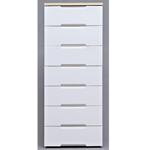 リビングの収納にピッタリの木天板付きチェストです。木天板は汚れに強く、前板は塗装家具のような質感でおしゃれなデザインです。また、引出しには開閉がスムーズな金属レールを採用しました。Yシャツを2枚並べて収納できる幅56cmタイプです。●完成品 ※上段を下段に重ねる作業のみ必要です。●商品サイズ(cm) 幅約56×奥行約41.5×高さ約138●引出内寸(cm) 幅約47.5×奥行約36.0×深さ約14.5●耐荷重 天板約10kg、引出約4kg、全体約38kg●収納の目安(約) Yシャツなら8枚、セーター・バスタオルなら4枚●主要材質 本体・フレーム・引き出し:ポリプロピレン 木天板:合成樹脂化粧繊維板(塩化ビニール樹脂) 前パネル:スチロール樹脂