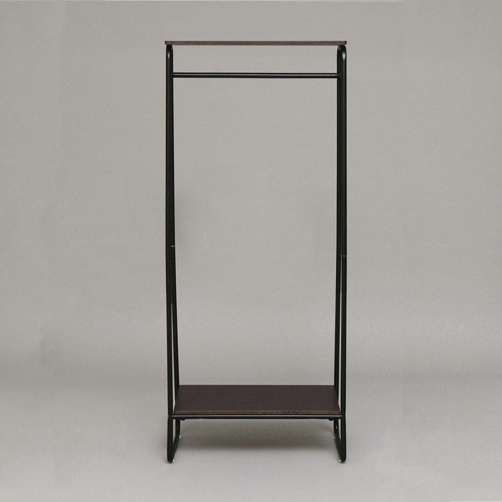 シワなく衣類を収納するのに適したデザイン性のあるスタイルハンガーです。ハンガーパイプには衣類をかけて収納し、棚板には帽子やカバンなどのファッション小物の収納ができます。