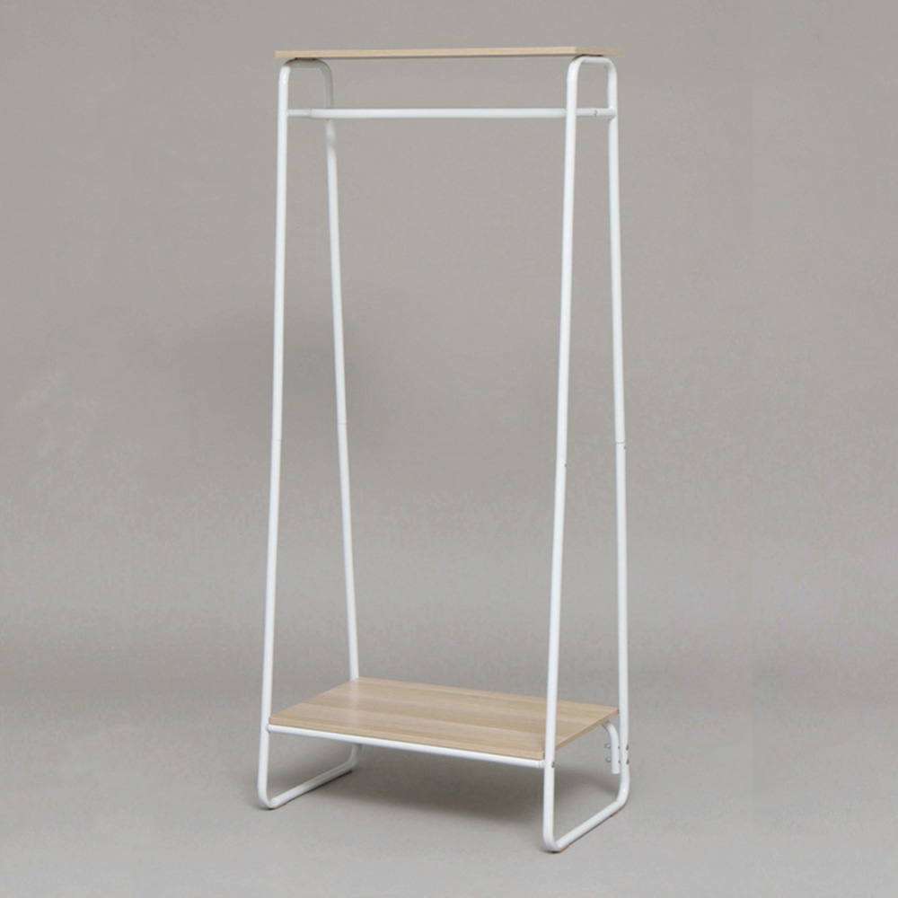 シワなく衣類を収納するのに適したデザイン性のあるスタイルハンガーです。ハンガーパイプには衣類をかけて収納し、棚板には帽子やカバンなどのファッション小物の収納ができます。