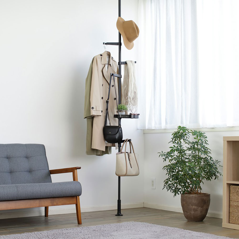 天井と床に突っ張るだけで、空間を有効活用できる伸縮ポールラック。