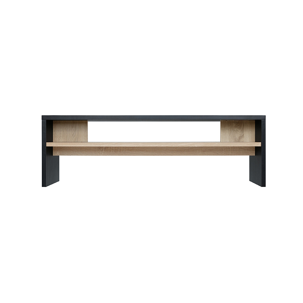 シンプルなデザインのリビングテーブルです。場所をとらないサイズ設計です。お部屋を開放的に演出します。天板の厚さは約2.3cmとしっかりとした作りです。メラミン樹脂加工で熱や水、汚れに強くお手入れが簡単です。フラットで使いやすい収納棚付きです。AVボードとしてもお使いいただけます。