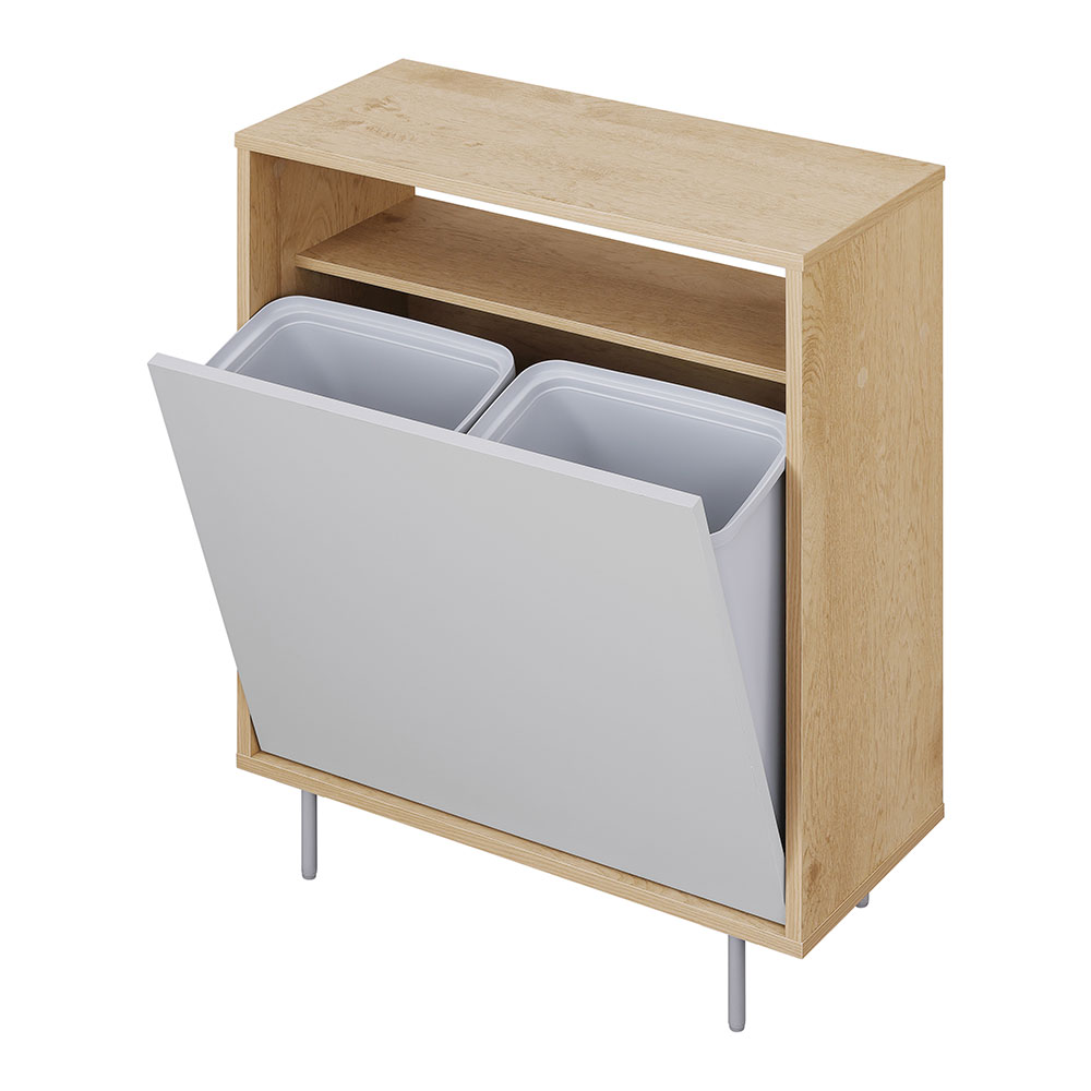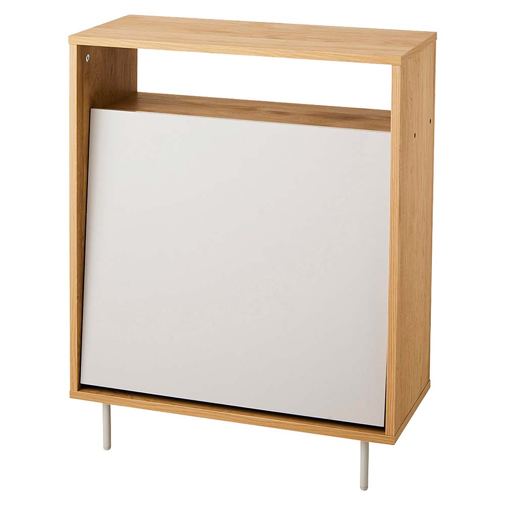 「ワンルームでもお部屋が広く使える」をコンセプトに省スペース設計した家具シリーズです。スリムな奥行きのペールストッカーです。分別ができるペール2個付きです。ペールは取り外しができ、汚れても丸洗いが可能なので清潔に保てます。収納棚付きで、小物の収納や飾り棚としても使えます