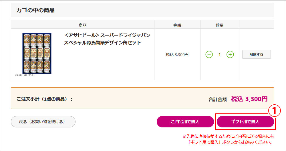 ※お客さまのご自宅へお届けし、お客様自ら先様にお持ちになる場合はこちらをお選びください。