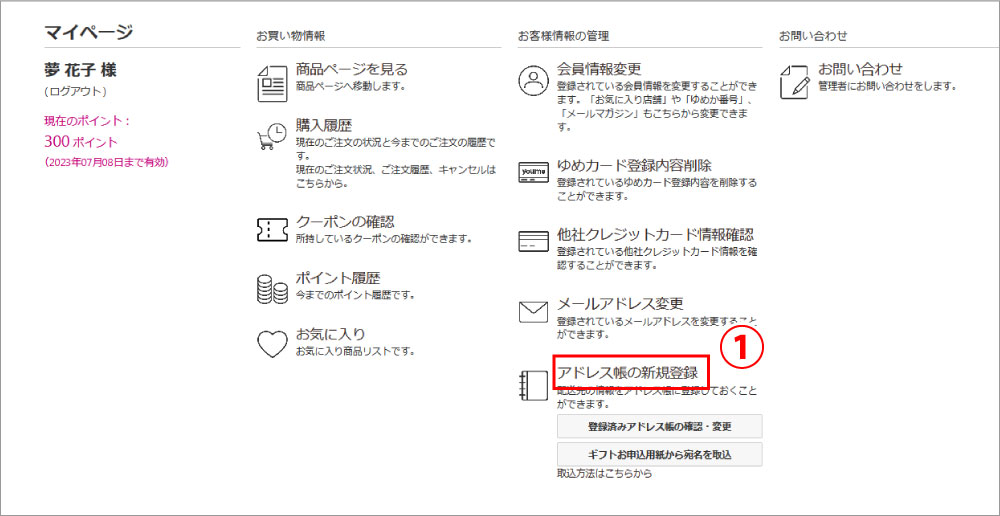 ※旧サイト「ゆめショップ」にご登録のメールアドレスが間違っていた・当時から変更された方はお手数ですが、新規登録から再度ご登録お願いいたします。
